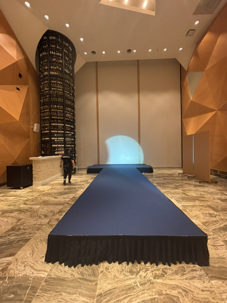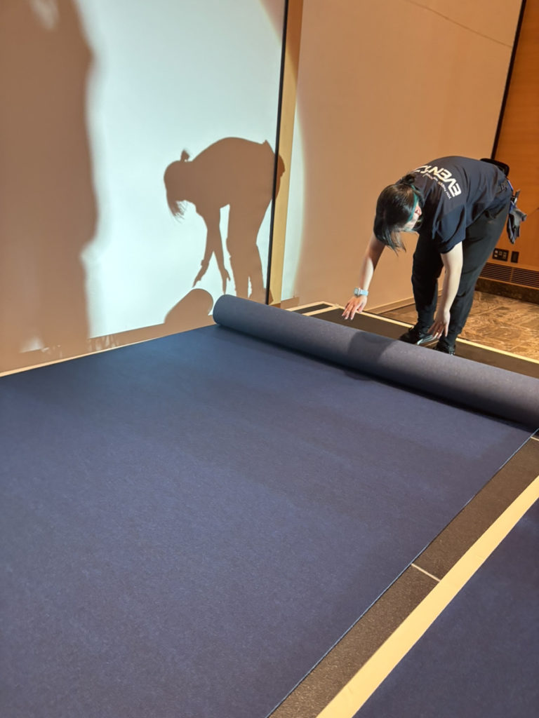 いつも、紺色のパンチカーペットをステージ分と合わせて20m分ご利用いただいてます!