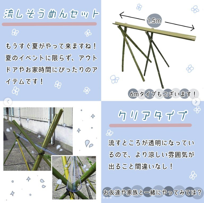 夏のイベントを盛り上げる鉄板アイテムといえば「流しそうめん」。しかし、竹の準備や衛生管理に悩む担当者様も多いのではないでしょうか。
